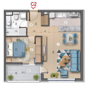 Struktura: Dvosoban - 46.34 m2