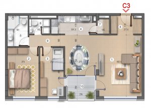 Stan ove strukture nalazi se u lameli B na trećem spratu.