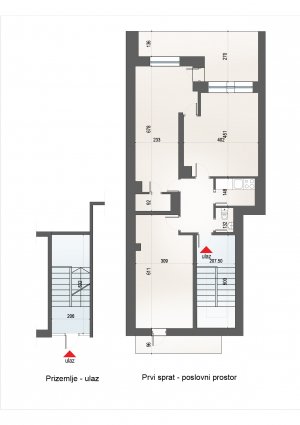 Poslovni prostor nalazi se na prvom spratu i ima zaseban ulaz u prizemlju objekta.
