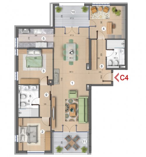 Stan ove strukture nalazi se na prvom, drugom i trećem spratu.