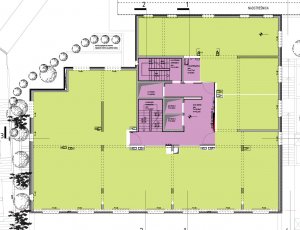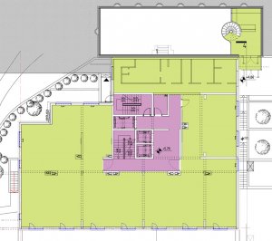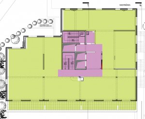 Visoko prizemlje objekta čini poslovni prostor i pristupa mu se direktno iz parka.